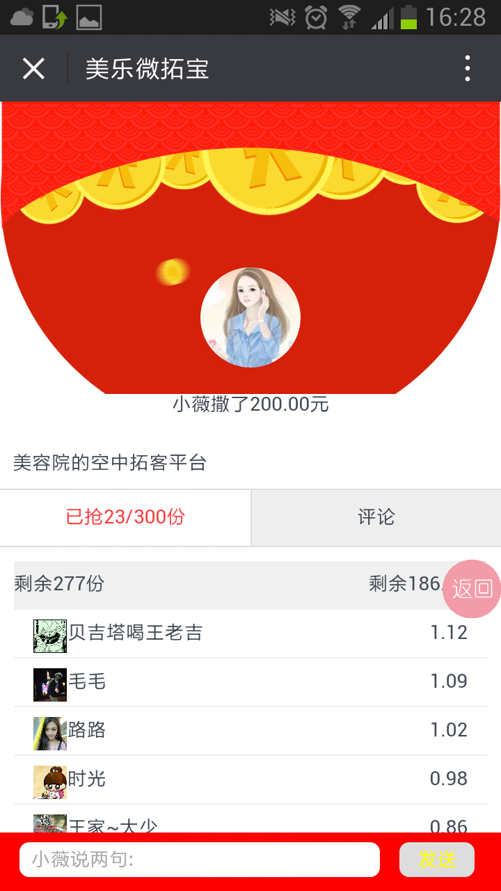搶紅包裂變工具產(chǎn)品介紹:在移動互聯(lián)網(wǎng)+持續(xù)發(fā)酵的今天,微信已經(jīng)變成我們每一天溝通的重要工具,在每一個人的手機中微信是必不可少的軟件;有了它,我們的溝通近了,我們組群找到組織了,更重要的是我們能夠愉快地?fù)尲t包了;無論大群、小群、還是朋友之間,只要有人撒了紅包,群里氣氛頓時活躍了,潛水的出來了,場面馬上熱鬧了,可見大家都非常喜愛搶紅包這項輕松且愉快的活動。![]() 搶紅包的威力:1、微信:2016年春節(jié),除夕當(dāng)日微信紅包的參與人數(shù)4.2億人,收發(fā)總量80.8億個,是2015年春節(jié)除夕當(dāng)日10.1億個的近8倍。2、QQ:2016年春節(jié),除夕當(dāng)日QQ紅包的參與人數(shù)3.08億人。收發(fā)總量22.34億個。除夕夜全球QQ用戶共“刷”1894億次,參與QQ紅包活動用戶中,90后占到了75%以上。 3、支付寶:2016年春節(jié),除夕當(dāng)日搶五福活動,支付寶紅包總參與3245億次,共有近80萬人集齊五福紅包。三四線城市參與支付寶紅包的用戶占比64%。 ![]() 既懂吸粉、又懂賺錢的紅包拓客工具來了:1、吸粉紅包:搶紅包必須要關(guān)注公眾號后才可以搶。2、距離紅包:設(shè)定自己店位置現(xiàn)場范圍內(nèi)多少公里的用戶才可以搶紅包 。 3、密碼紅包:商家把廣告或優(yōu)惠券通過圖片或文字描述將密碼包含其中推送紅包。 4、裂變紅包:轉(zhuǎn)發(fā)紅包,裂變下線,為上線貢獻(xiàn)每筆紅包10%,讓大家都樂意轉(zhuǎn)發(fā)。 ![]() 微信搶紅包是非常棒的宣傳工具:快、準(zhǔn)、狠!商家“撒錢”發(fā)紅包,活動廣告信息隨著搶紅包進(jìn)入每個粉絲眼中,商家撒的開心,粉絲搶的高興。你有紅包、我有紅包、大家都有紅包,才是真的好紅包!![]() ![]() ![]() ![]() |