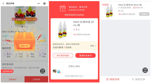 幸運抽獎工具產(chǎn)品介紹:抽獎給用戶一份驚喜,在線抽獎也大量用于社群促活,分享抽獎還能得到多個抽獎碼,大大提高了用戶分享的動力,從而達(dá)到裂變的效果。![]() |