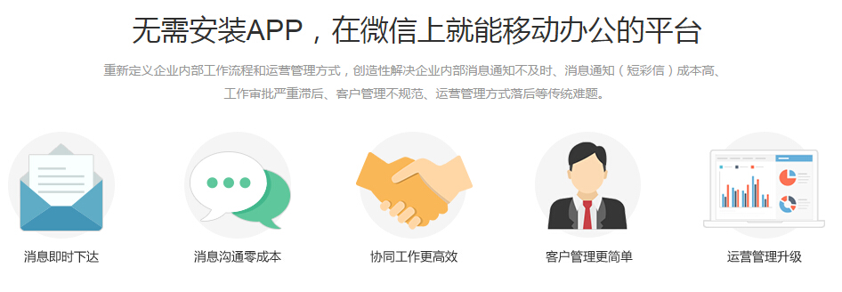 企業(yè)微信移動(dòng)辦公平臺(tái)產(chǎn)品介紹:朗云移動(dòng)辦公無紙化管理系統(tǒng)是一套搭建在企業(yè)微信的無紙化辦公系統(tǒng),員工使用手機(jī)微信即可完成日常工作匯報(bào)、審批、通知、考勤等操作。無線安裝任何APP,直接微信上就能移動(dòng)辦公的平臺(tái)。主要特點(diǎn):消除信息孤島的信息管理系統(tǒng):● 打造高度集成化和協(xié)同化的信息網(wǎng)絡(luò),加快了信息傳遞速度; ● 組織內(nèi)部的信息可以安全、快速的傳遞至分子公司、各級(jí)部門、上下級(jí)機(jī)構(gòu)和其他相關(guān)組織; ● 整合異構(gòu)系統(tǒng),實(shí)現(xiàn)集團(tuán)內(nèi)組織的互聯(lián)互通,資源、信息共享。 提高工作效率的業(yè)務(wù)處理系統(tǒng): ● 優(yōu)化企業(yè)組織結(jié)構(gòu)和流程設(shè)定,縮減冗余業(yè)務(wù)處理層,簡化協(xié)同辦公運(yùn)作的環(huán)節(jié)和程序,完全電子化的事務(wù)處理流程; ● 強(qiáng)大的流程管理功能使組織事務(wù)處理更規(guī)范化、透明化和便捷化; ● 協(xié)同的辦公環(huán)境,整合組織內(nèi)各職能部門、上下級(jí)單位和外部機(jī)構(gòu)等資源,以交互的方式進(jìn)行業(yè)務(wù)協(xié)作,大大提升了事務(wù)處理的效率,促使協(xié)同辦公運(yùn)作成本的減少。 增強(qiáng)領(lǐng)導(dǎo)掌控能力的決策支持系統(tǒng): ● 幫助管理人員及時(shí)獲得組織內(nèi)外信息,節(jié)約時(shí)間和精力,強(qiáng)化領(lǐng)導(dǎo)的監(jiān)控管理,增強(qiáng)管理者對(duì)組織的控制力; ● 信息的迅速傳遞和全面的協(xié)同性提供完整的、整合的決策基礎(chǔ)數(shù)據(jù),各種分析報(bào)表進(jìn)一步支持決策; ● 保證領(lǐng)導(dǎo)層實(shí)時(shí)、全面掌控各級(jí)組織的工作狀態(tài),及時(shí)發(fā)現(xiàn)問題及時(shí)解決,防止低效辦公。 功能模塊:1.行政辦公:微信考勤:微信搖一搖即可簽到,告別傳統(tǒng)考勤機(jī) 審批:審批通知微信直達(dá),業(yè)務(wù)流轉(zhuǎn)更順暢 開會(huì):訂會(huì)議室、通知、簽到、記錄一次搞定 報(bào)銷:一鍵填單閃電報(bào)銷,月底票據(jù)整理不再麻煩 請假:病假、事假、年假隨時(shí)發(fā)起,系統(tǒng)申報(bào)方便規(guī)范 2.銷售管理: 移動(dòng)CRM:實(shí)時(shí)掌握客戶資料,把握每個(gè)銷售機(jī)遇 外勤簽到:了解員工去向,拜訪、簽到隨時(shí)查看 車輛管理:公司車況一手掌握,申請用車分分鐘解決 知識(shí)百科:構(gòu)建公司自己的百科全書,最新資料隨手查閱 3.工作協(xié)同: 通訊錄:自動(dòng)更新、關(guān)鍵字檢索,找人不再成問題 任務(wù)分派:任務(wù)指派到負(fù)責(zé)人,快速高效完成任務(wù) 同事群聊:方便項(xiàng)目小組即時(shí)溝通交流,重點(diǎn)會(huì)議記錄備忘 工作日志:員工實(shí)時(shí)匯報(bào)工作,團(tuán)隊(duì)工作進(jìn)度盡在掌握 4.企業(yè)文化: 新聞公告:公司最新消息及時(shí)通告,支持保密消息及閱讀范圍 企業(yè)活動(dòng):活動(dòng)發(fā)布、報(bào)名、統(tǒng)計(jì)、反饋一體化 問卷投票:全方位調(diào)研收集信息,導(dǎo)出、處理、分析一步到位 同事社區(qū):創(chuàng)建暢所欲言新天地,促進(jìn)同事溝通零距離 5.自定義表單: 企業(yè)可以將常用表單設(shè)計(jì)到平臺(tái)中,并設(shè)置好審批流程,即可在平臺(tái)中流轉(zhuǎn) 軟件截圖:![]() ![]() ![]()